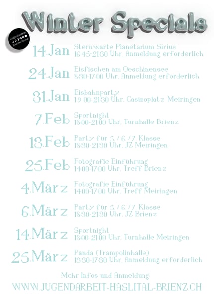 | Fr: 23.01.26 | 15:30 - 20:00 | Treff | Brienz | ab 5. Klasse |