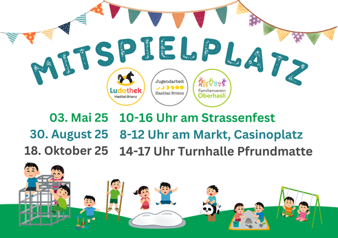 Der Mitspielplatz ist ein gemeinsames Projekt des Familienvereins, der Ludothek und der Jugendarbeit – und verwandelt je nach Situation, Ort und Wetter einen Platz, Spielplatz, eine Turnhalle oder den Marktplatz in ein lebendiges Spieleparadies.