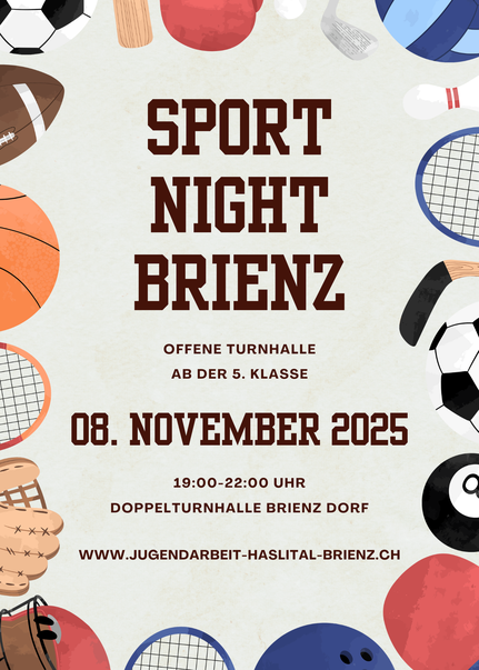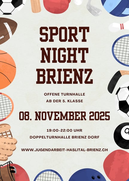 Hast du Lust, dich so richtig auszutoben und neue Spiele auszuprobieren? Dann komm zur Sportnight an ausgewählten Samstagabenden von 19:00 bis 22:00 Uhr, betreut von der Jugendarbeit Haslital-Brienz!